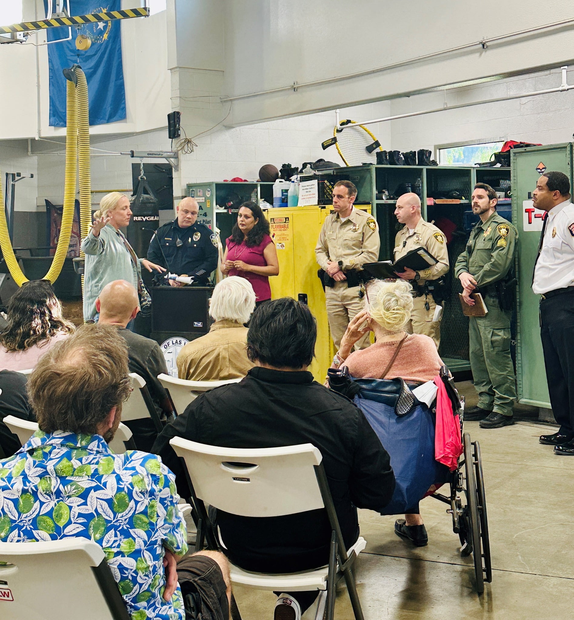La concejal Olivia Díaz extendió un gran agradecimiento a la Estación 4 de Las Vegas Fire & Rescue por su hospitalidad durante una discusión de seguridad pública con los vecinos del centro. El evento contó con la presencia del LVMPD Downtown Area Command, el Departamento de Seguridad Pública de la Ciudad de Las Vegas, el teniente Brandon Bell y el jefe de bomberos Fernando Gray, quienes respondieron preguntas y abordaron preocupaciones de los residentes. Díaz destacó el agradecimiento especial a los vecinos de Mayfair y los barrios históricos por su participación activa.